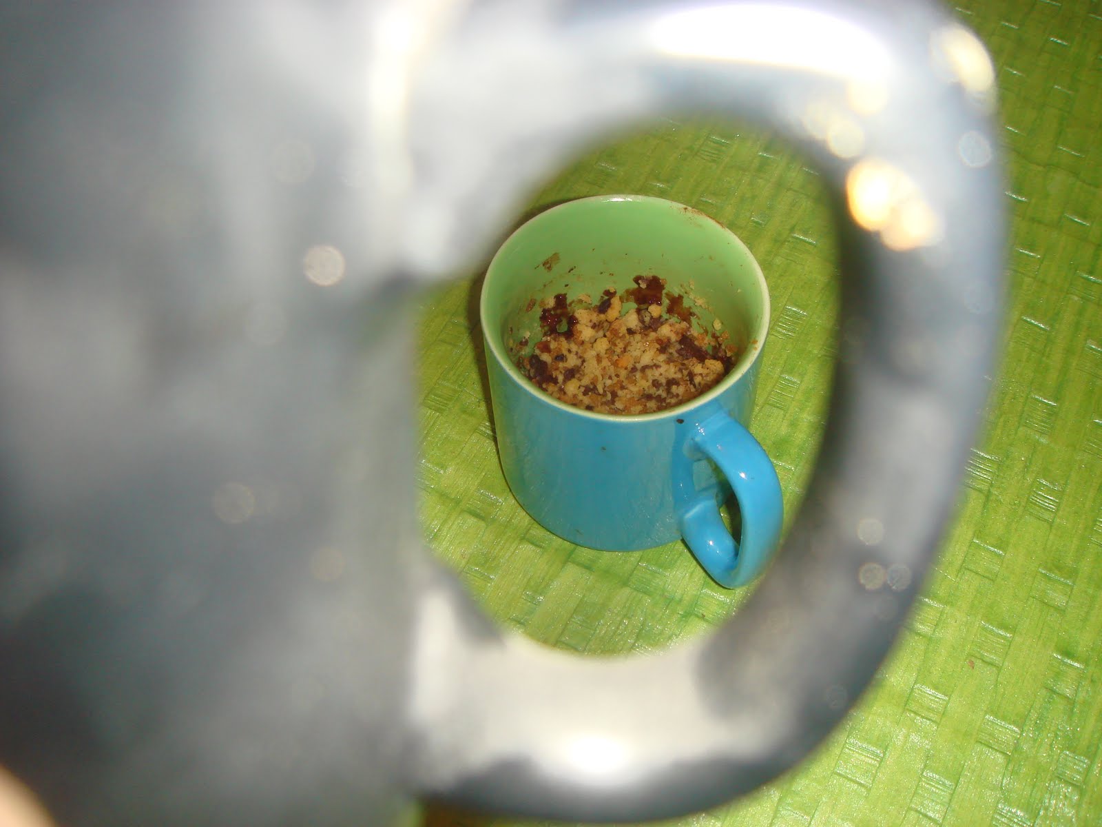 The first impression…….i had to actually peep into the tea cup as if i was looking into a well:-)….i hadn’t scooped enough mixture( Forgot that this would not rise like a cake..LOL)