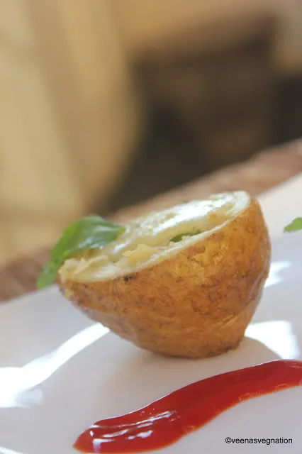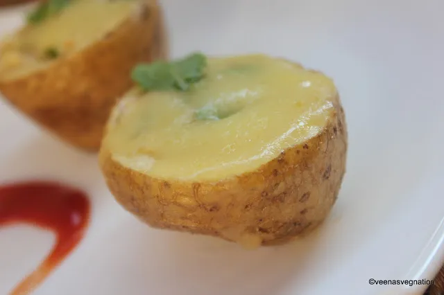 For this month of Taste And Create, I am paired with Sid’s Sea Palm Cooking.Wow!!!She does a lot of cooking and baking. I could see lot of posts under Tapas Night..Tempted to ask her about it.She cooked the carrot Pakoras from my blog and i am astonished, for she neither had the rice flour nor the gram flour. She actually roasted the grain and powdered it and then went about finishing the dish. Would I do that????NO…Hop on to her CARROT PAKORAS TO ACTUALLY SEE THE PROCEDURE!!Well, searching for a recipe from her blog,which my daughter would love I saw the Baked Stuffed Potato and was sure she would love it.I made some minor changes to suit my vegetarian taste.
