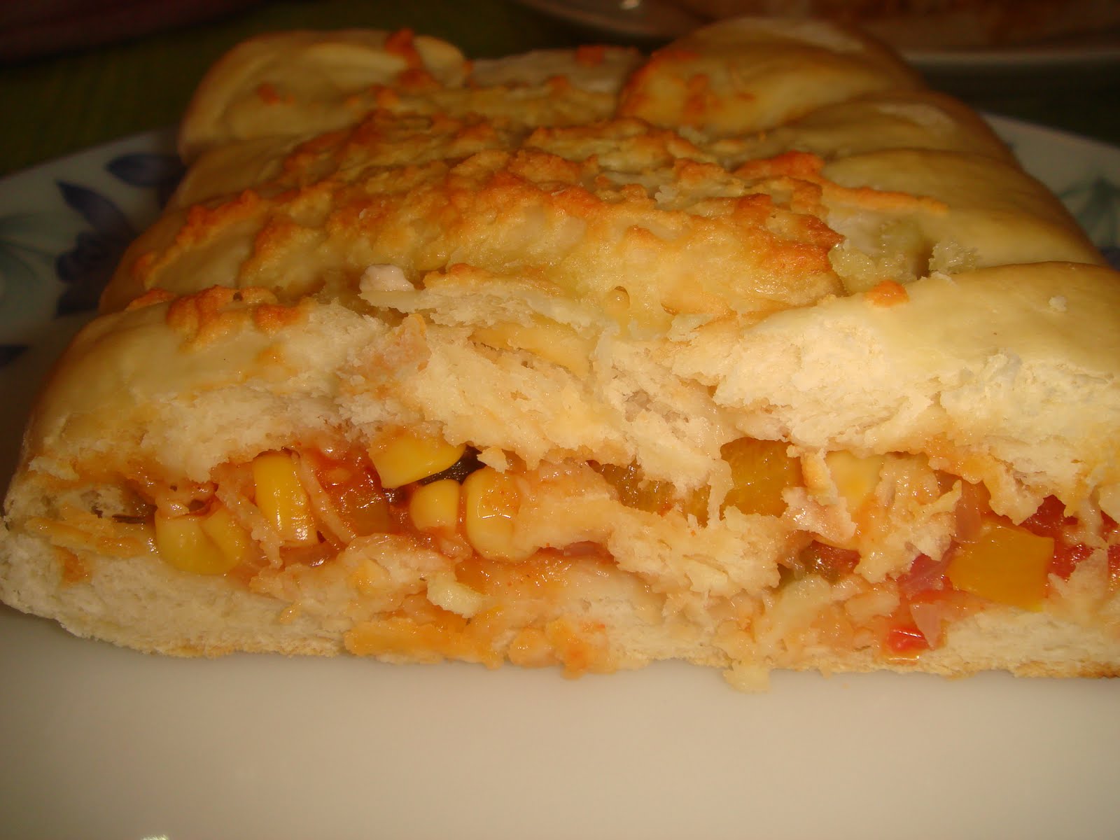 What a beautiful bread! I appreciate the skill in the neat braiding. I also love the fact that the filling is savoury – this is not something that I see often.