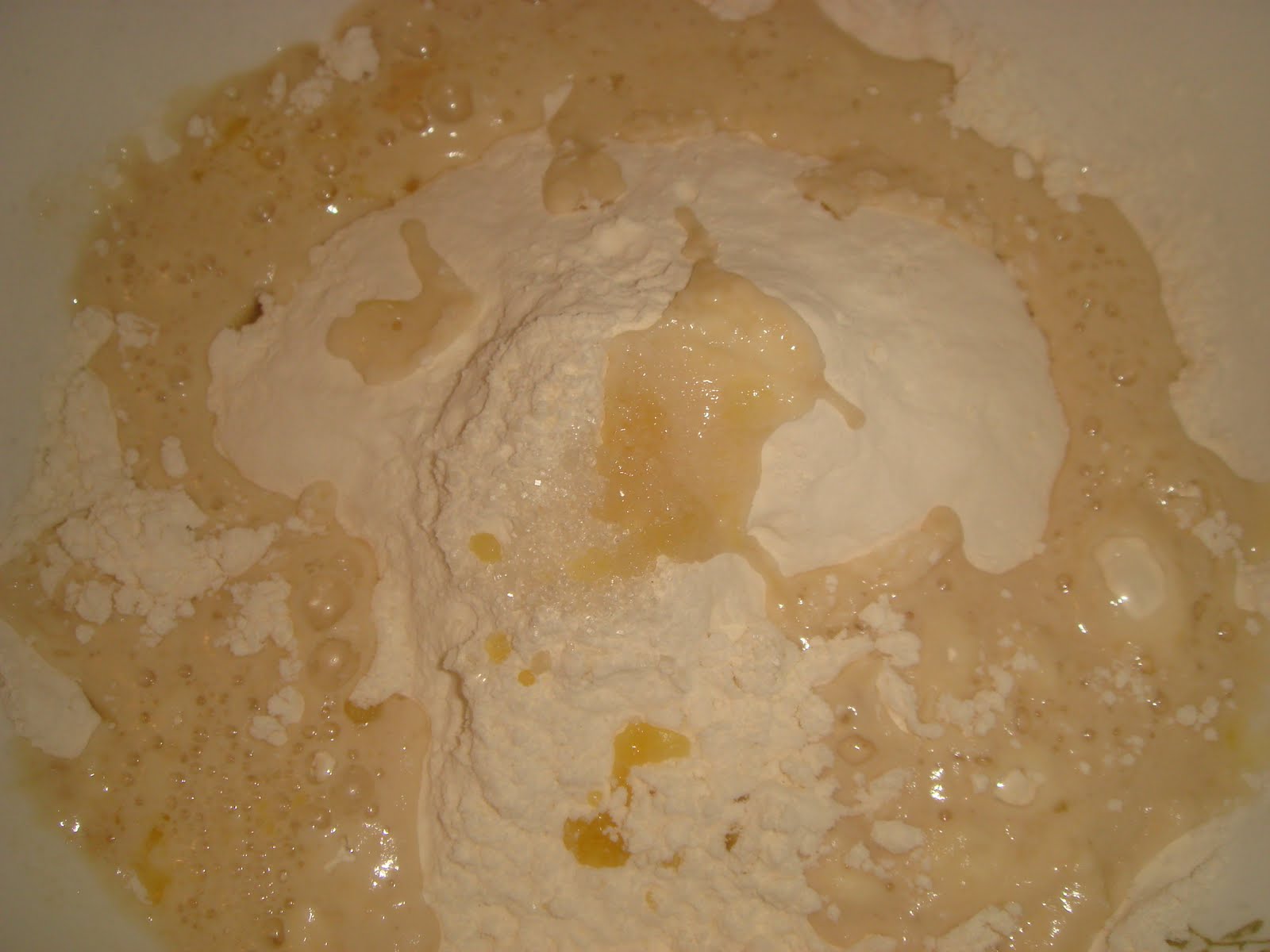 Mix yeast with half the water and little sugar and set it aside to froth up