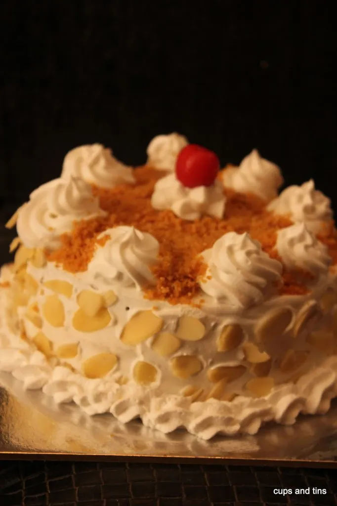 syrup, drizzle some caramel syrup, fill with whipped cream and frost it with
