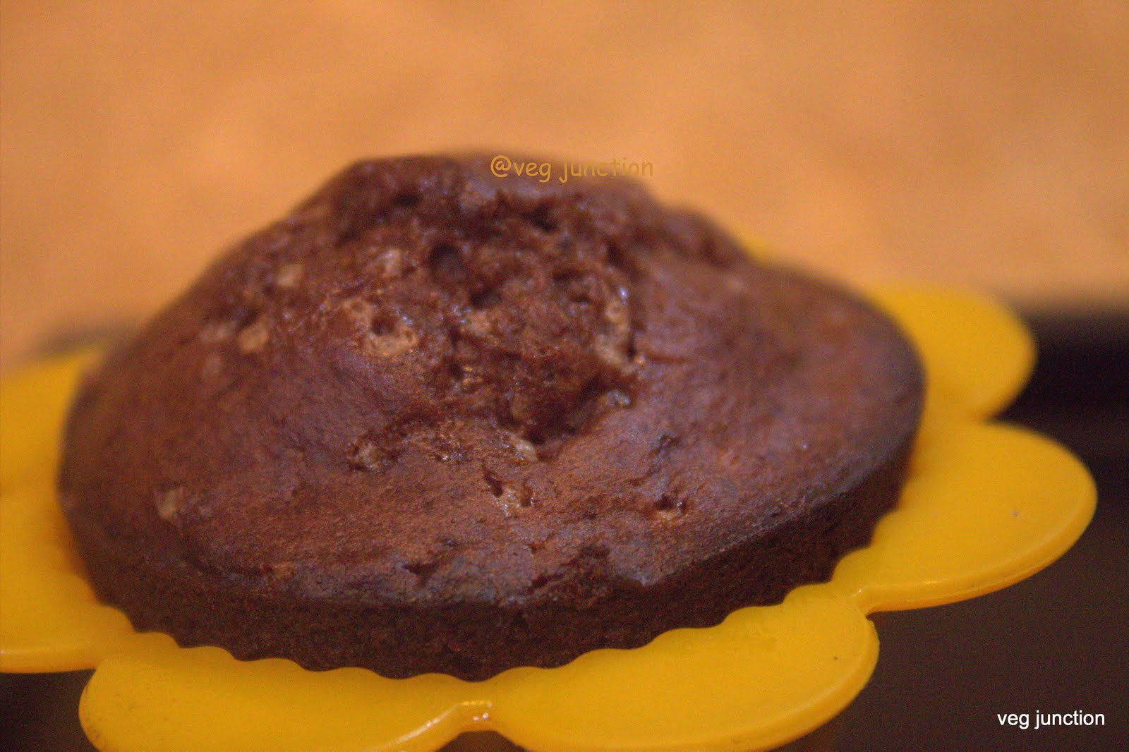 Having a chocoholic at home and trying to find a recipe to address that chocoholic fever is quite easy. All she needs is some chocolate flavoured quick bite.For the past three days whenever I crossed the dining room , I knew something or may be someone was staring at me…yeah..The bananas from one side and my hubby from the otherside…looking if I use them or they might find their way into the bins again:-(Well..The baker in me..Thanks to Bake-a-thon:-)..did use them in these yummy muffins .My daughter happy,my hubby ofcourse very happy and hopefully the bananas too:-)I adapted this recipe from Nigella