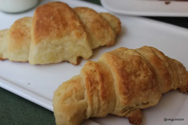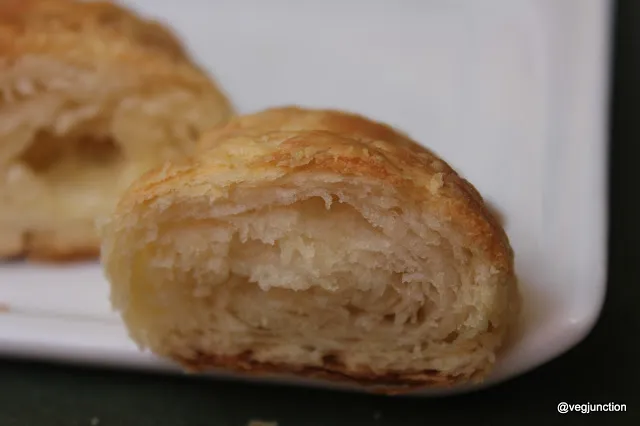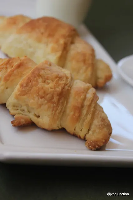 When Aparna announced that the bake for the month would be Croissant , I decided that this was not for me and I should sit out of this challenge. All through the month I saw the members put pics of their delicious croissants. From the discussions I could see that it was a lengthy process but not an impossible one. So finally I dared myself to start the process. With the power cuts and the sudden very warm weather here, it was quite a challenge but the end result is too good for me to complain.