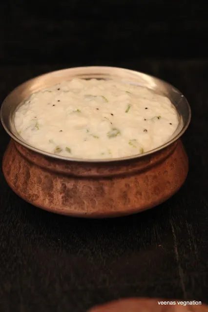 with green chillies, coriander and mustard . The texture of this should be mushy which is achieved by mashing the hot rice with the addition of milk.