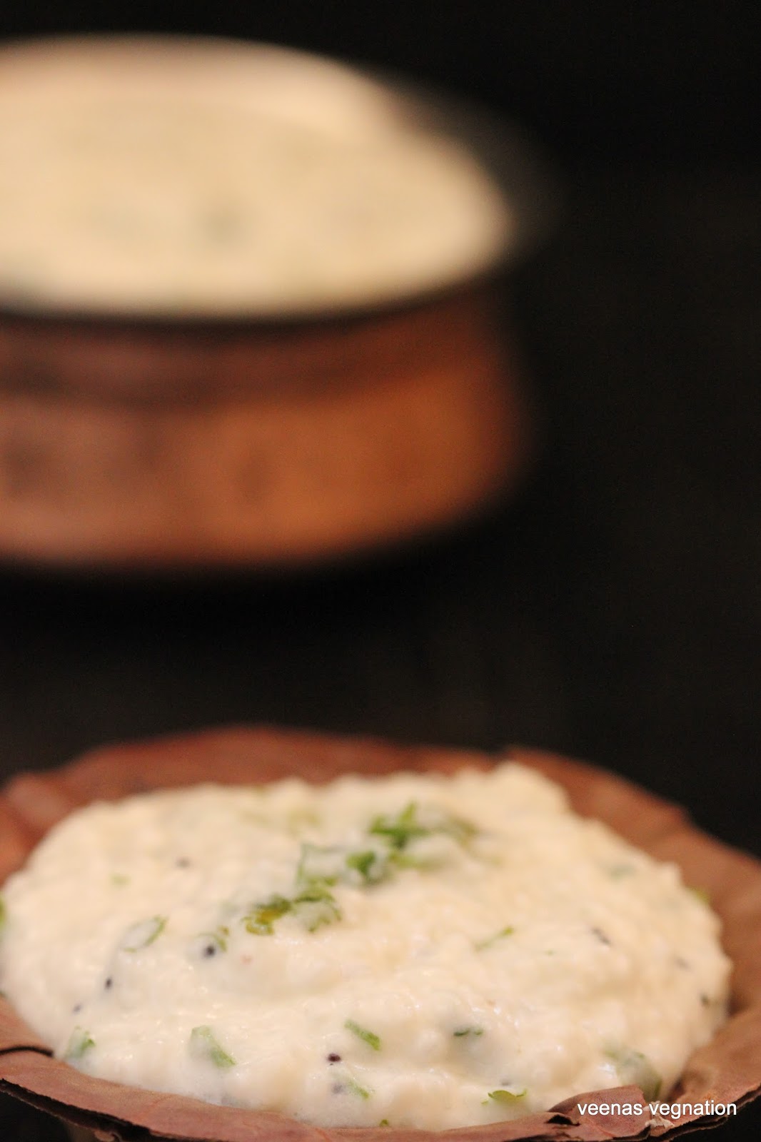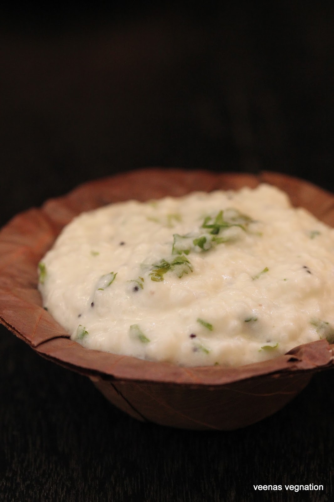 with green chillies, coriander and mustard . The texture of this should be mushy which is achieved by mashing the hot rice with the addition of milk.