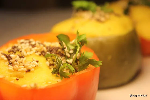 Pour the mix into each capsicum and steam for around 10 minutes. Cool it