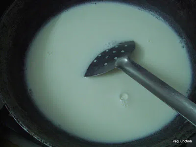 Continue to cook it forms a slushy mass and starts to leave the sides