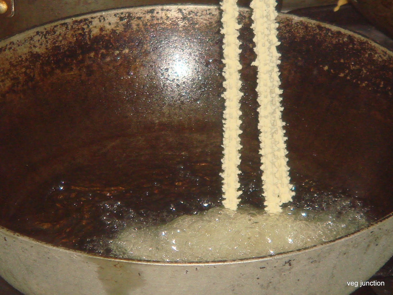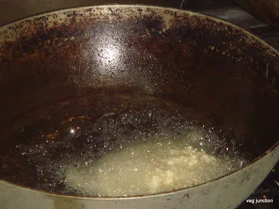 To test if the oil has attained the required heat, drop a small amount of this dough to the oil,. If it sinks and rises immediately, it means that that is the right temperature.