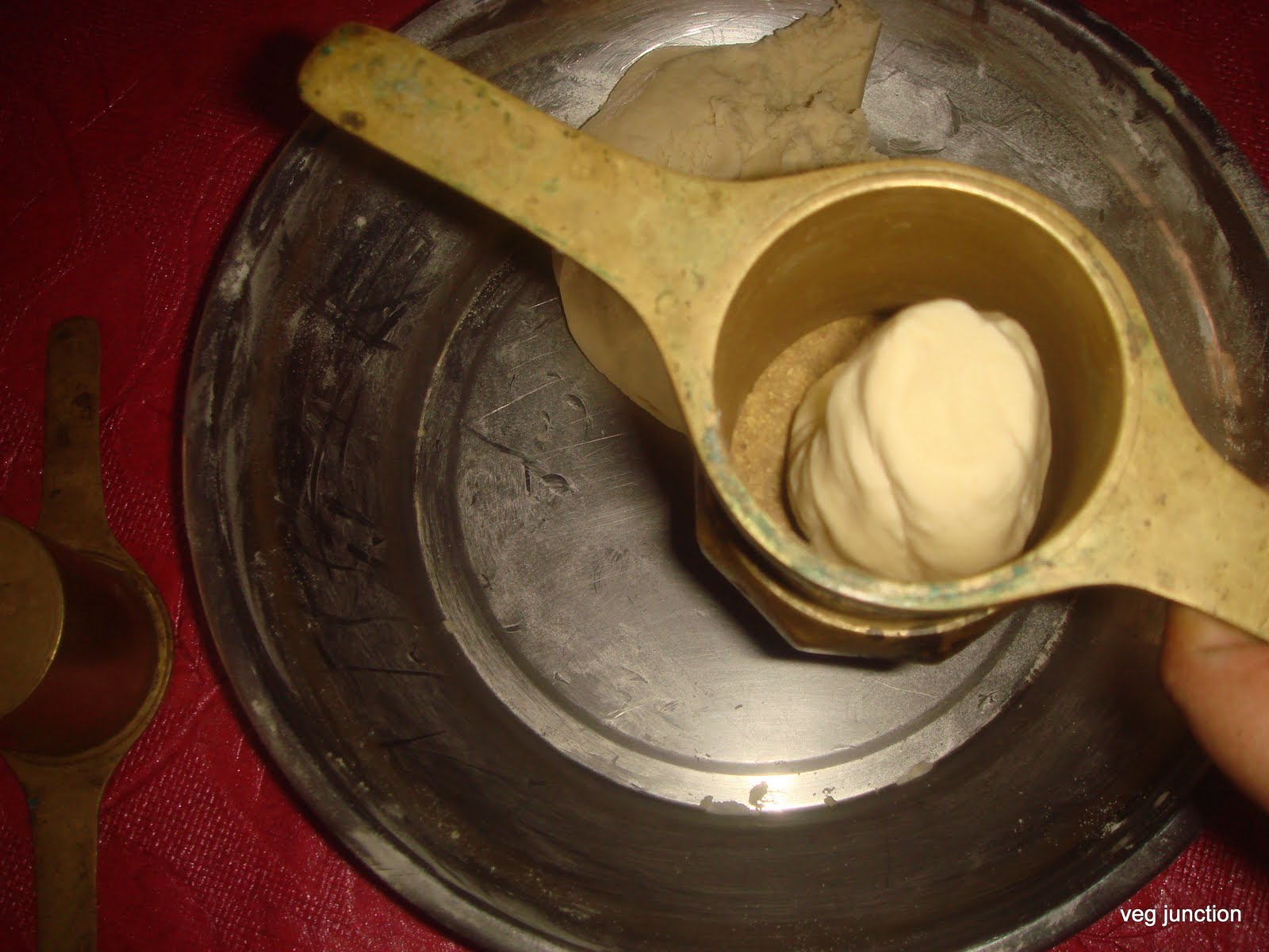 Now take a small amount of this dough, make it into an elongated shape and stuff it into the murukku press.