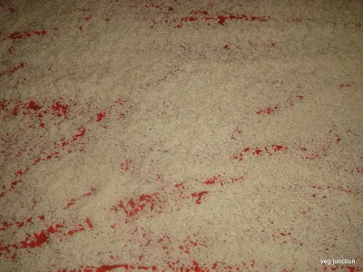 To this flour mixture add the butter and mix to form a crumb like consistency