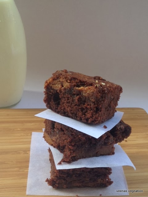When Subhasini announced that we will be baking DDL Brownies for this week, I knew it would bake it immediately…Having a chocoholic at home has it own advantages:-).Subhasini has given an excellent tutorial for the recipe and I loved the way she has given a pictorial for lining the tin. Hop over to her log to see this. The Dulce de leche is prepared by the tutorial shown by Divya. Everything was easy except that I had a fear like many others that my cooker would explode while cooking the condensed milk. Nothing of that sort happened. It was as easy as cooking rice:-). So here is quick delicious brownie!!!!