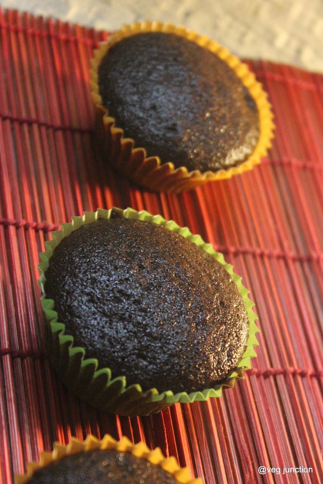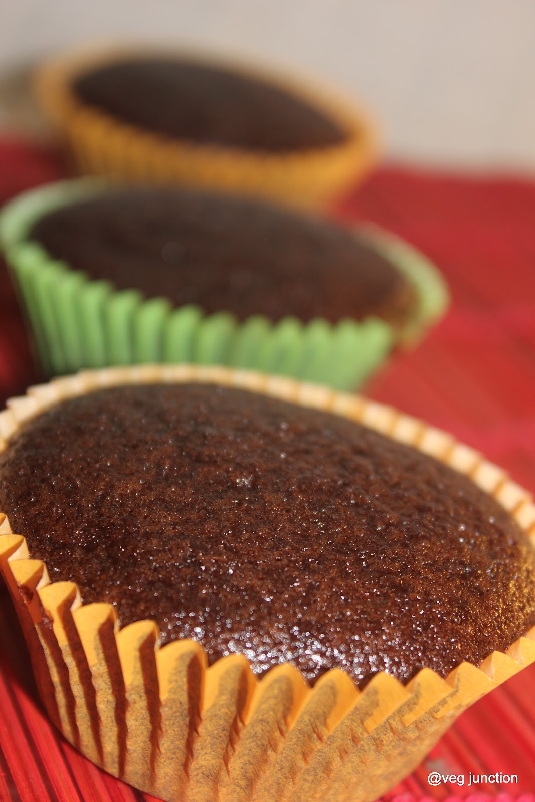 I think i have been away from food blogging for over a month now.Have been very busy with our Quilting Group DESI QUILTERS, but decided to come back to veg junction with Blogging Marathon#20!!!!What better way then to start the week with the theme”Chocolate”:-).Since my daughter prefers bite sizes sweets, i planned to make cup cakes yet again and the recipe from Rak’s kitchen was the right one.