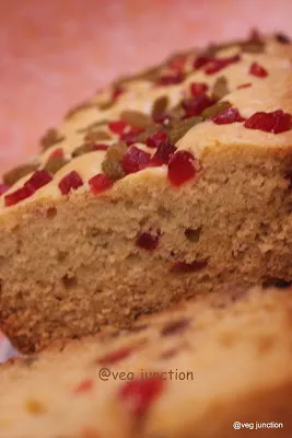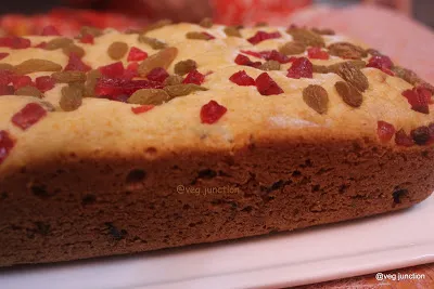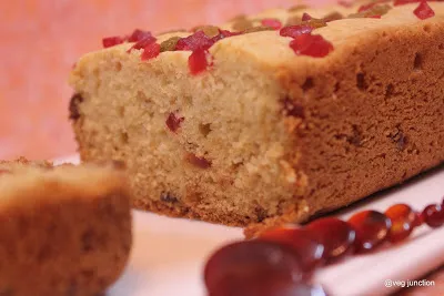 Can’t believe that I have continuously baked and blogged for the last 21 days!!!!!Just when I thought that I had baked and blogged about most of my Favourites, I remembered this recipe. I first tasted this when Uma had baked it. Loved the texture and those soft raisins in it,called her for the recipe and as usual my friend immediately sent me the recipe .So here is a quick eggless cake/loaf