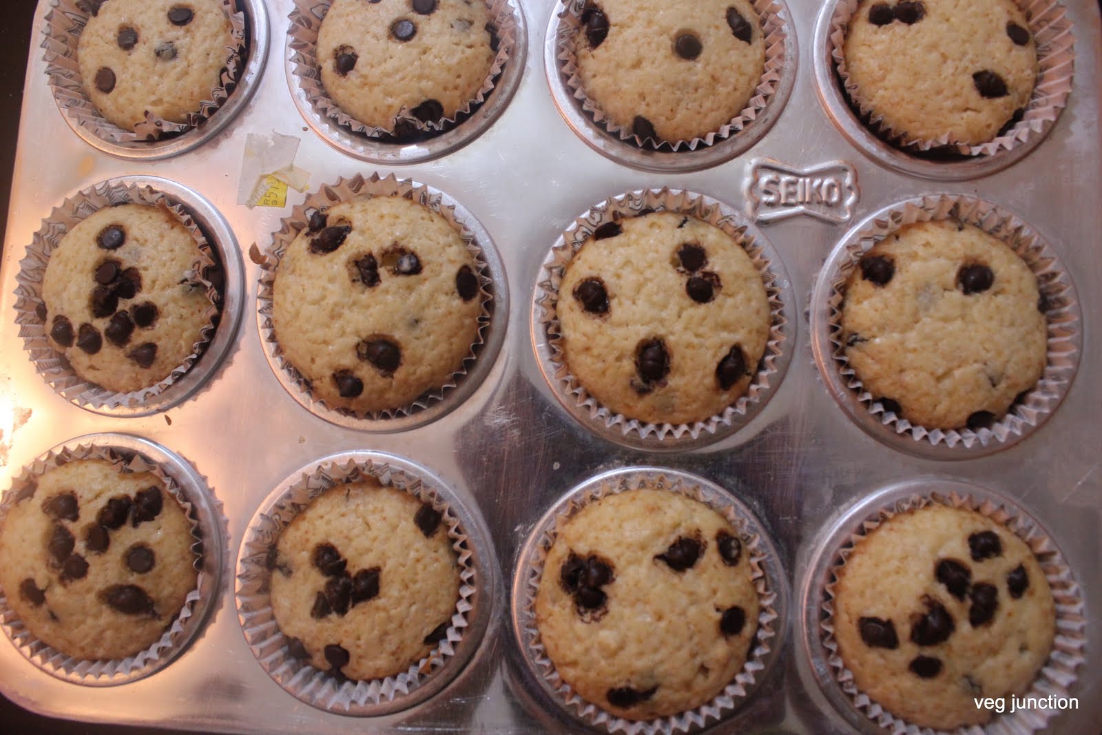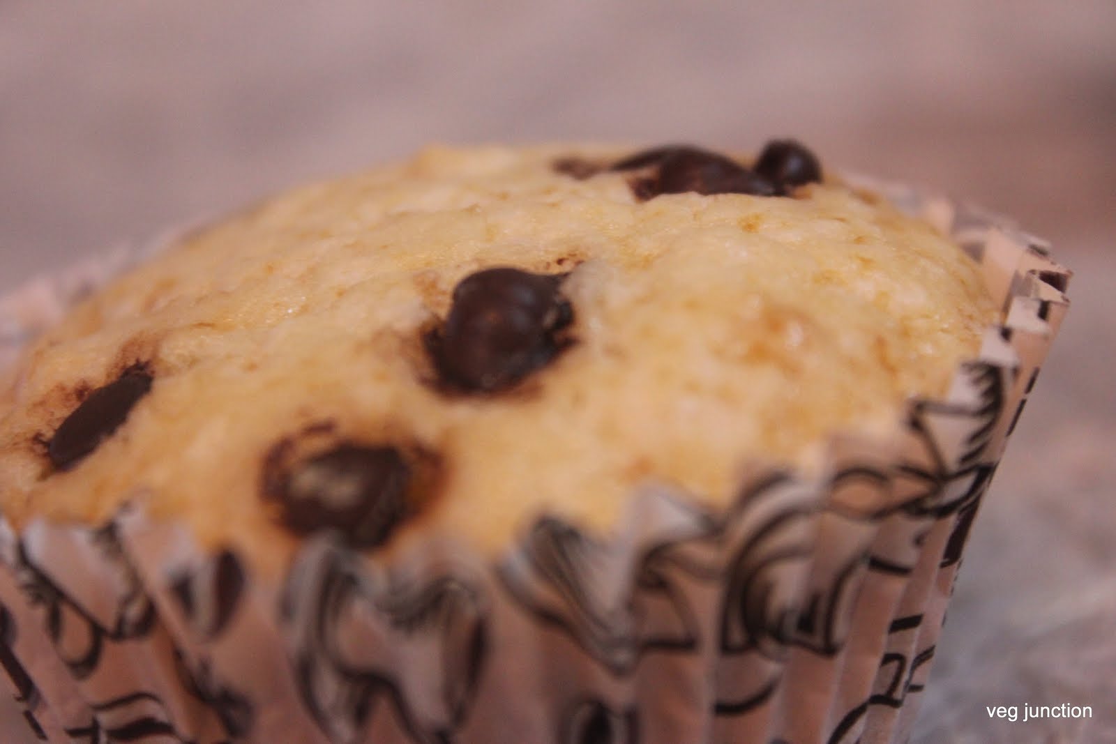 Another cup cake recipe:-) This time without concealing any fruit though:-)I had bookmarked this recipe from sharmispassion .Looked at the procedure and it looked very simple and I had all the ingredients including the chocochips for my daughter:-)