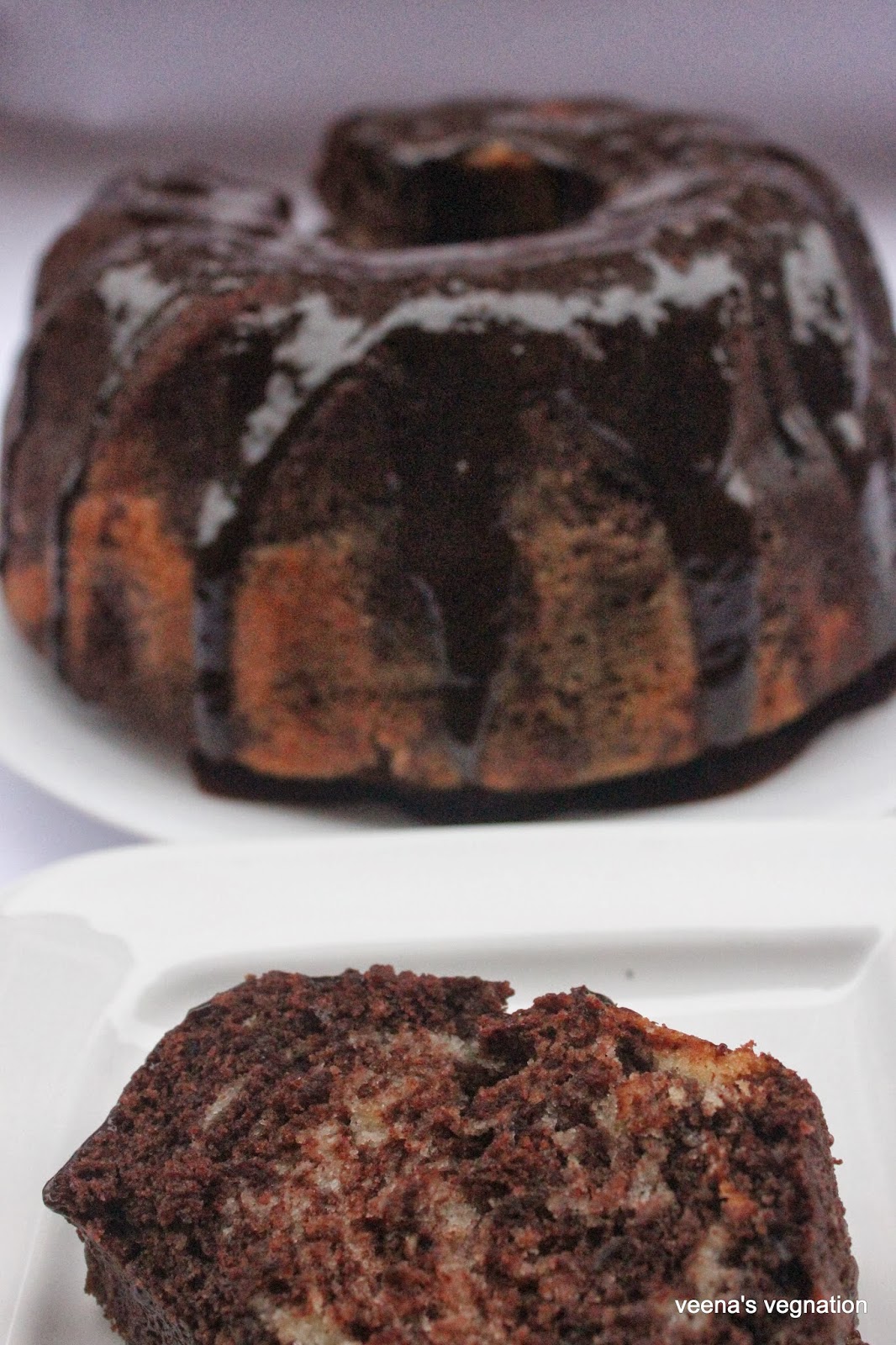 So here is the very moist eggless vanilla chocolate marble cake baked for the national bundt cake day