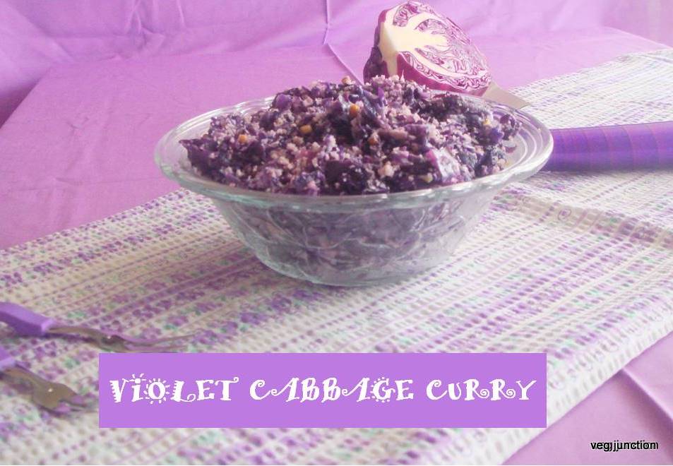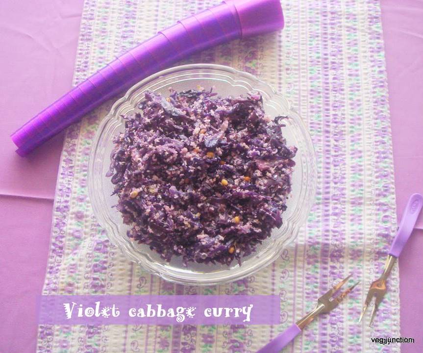 Moving ahead with my Colourful posts on Blogging Marathon,today’s post is another colourful dry curry. This is cooked in microwave, so very easy and fast to cook and tasty too.Purple cabbage has a wonderful colour.