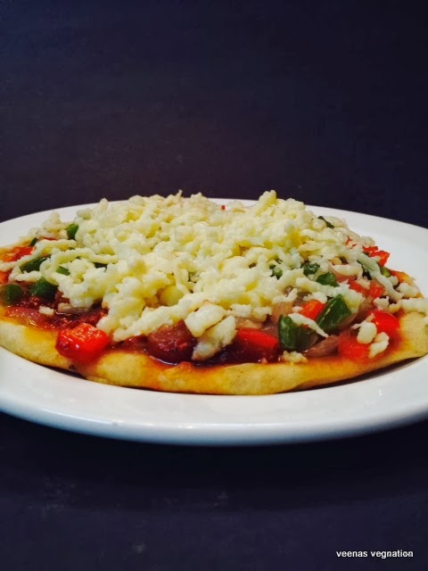 For the second day of pizza marathon it is an indiansed version of pizza famous in Gujarat. It does not have a yeasted base and the cheese is not melted too.had bookmarked this from VAishali’s blog as vaishali says this pizza has a unique taste