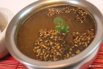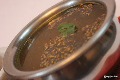 This rasam has the predominant flovour of Cumin and pepper.This rasam is devoid of any dal, hence it is easy on digestion too. This is mandatory in most Tamil homes when you are down with fever/cold.They say having a glass of this hot rasam will relieve you of any body pain. Definitely soothes your taste bud when you have a severe cold.