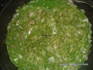 Heat oil in a wide mouthed microwave safe bowl. Add cumin seeds to it and heat it for 1 minute. Put the chopped onion into this and fry it on High for 2 minutes