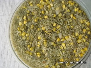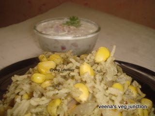 Perfect Mint corn pulav ready to be served with a raita of your choice!!!!!!!!!!