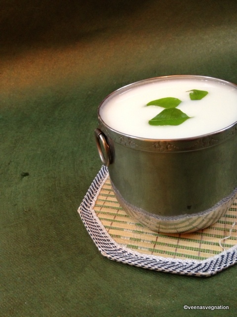 I other day I blogged about Paanagam as the neivedyam for Sriramanavami.The other neivedhyam which feature on Ramanavami is Neer Moru and Kosumalli/Kosambiri.This is nothing but spiced buttermilk which is heavenly when had on a hot sunny day.