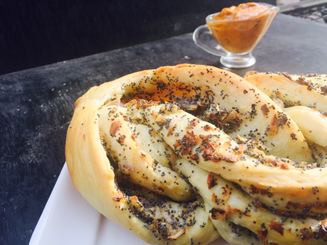 The onion poppy seed mixture gives a lovely taste and texture to this soft