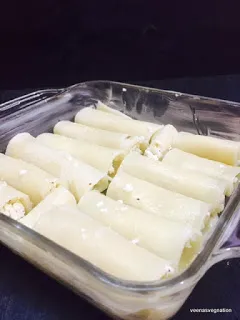 Another decilious creamy Italian dinner recipe is this paneer filled Canneloni