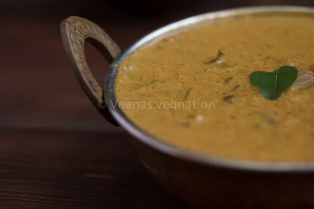 was surprised to see that milk was used in kuzhambu.She has cooked this with