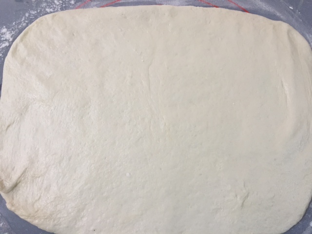 After an hour, take it out, punch down, roll the dough into a rectangle,