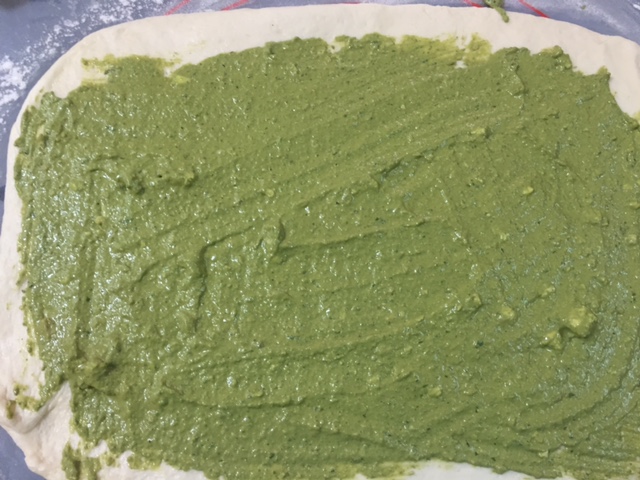 evenly spread the pesto all over.