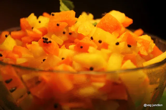Salads are always refreshing and this particular salad has raw mango in it to give that extra tanginess.
