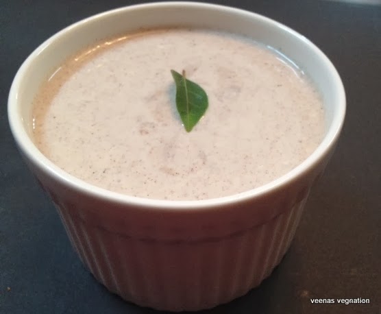 My mother is a diabetic and she makes sure that she manages to keep her sugar levels under control with regular medicines and a proper diet. One that features very regularly is this keepai koozh or ragi porridge.Earlier it was a tedious procedure to soak the ragi and grind it at home but now we get the roasted flour called Ragi huri hittu. All you need to do is to mix it with buttermilk or yogurt and flavourings and enjoy the drink or meal