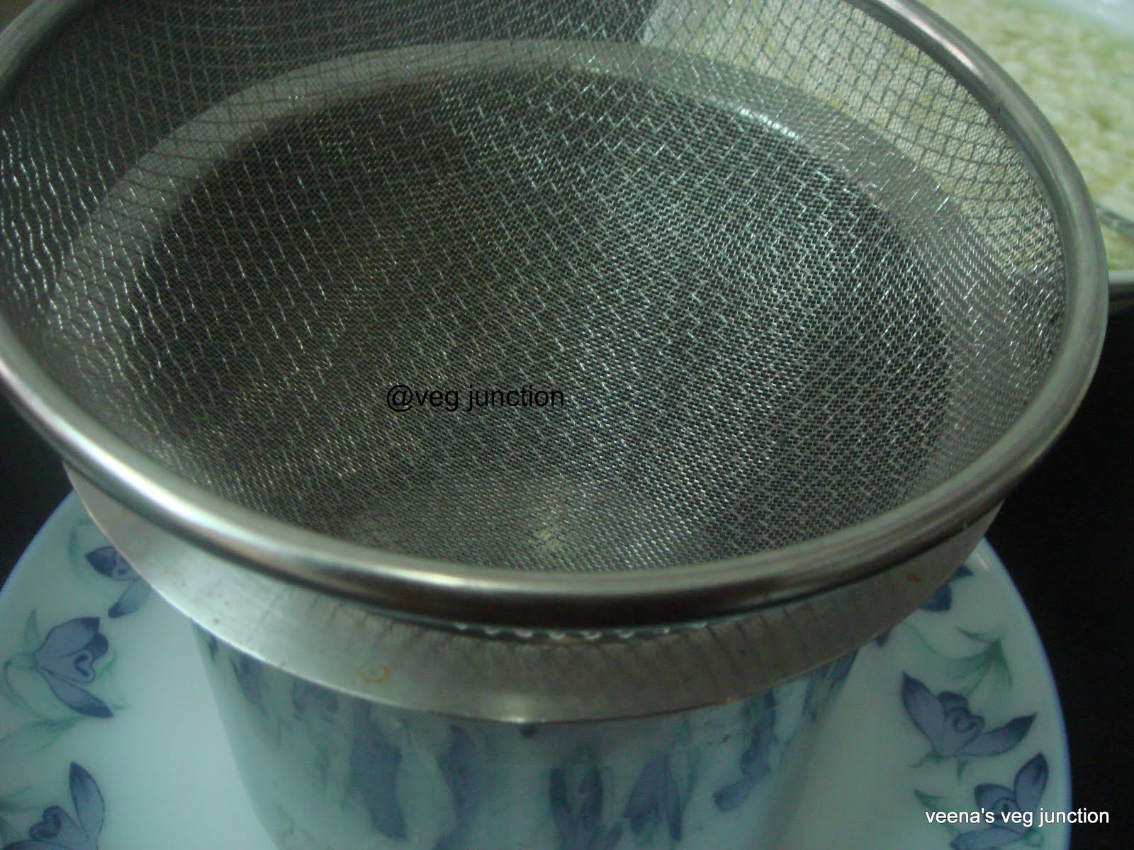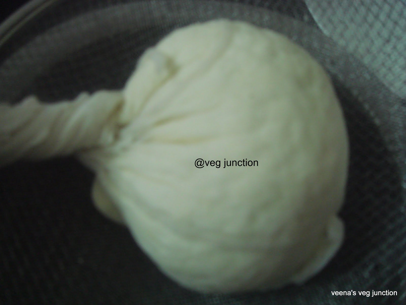 Now Arrange a stainer on a vessel and spread a cotton cloth on it.Pour the paneer formed and remove the whey. Store this for further use.