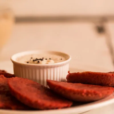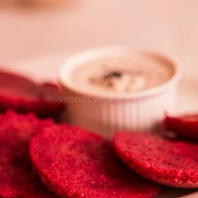 Remove the skin of the beet, chop into small pieces and grind it into a smooth paste with chillies and ginger without adding much water else the batter will become very runny