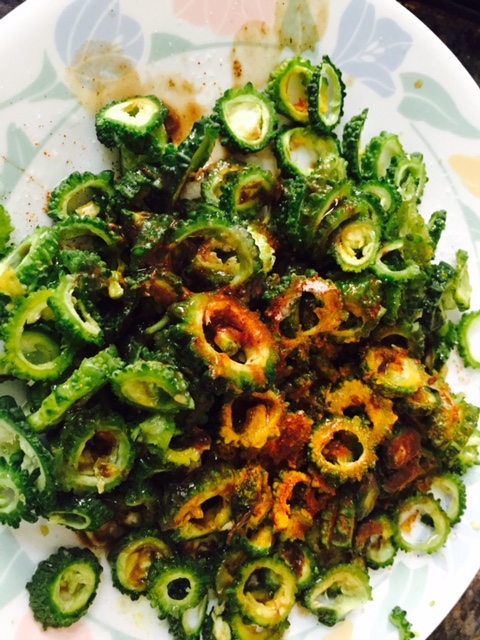 • Cut the ends of the bittergourd and remove theseeds. Cut the bittergourd into thin rings. Now mix all the other ingredients with this.