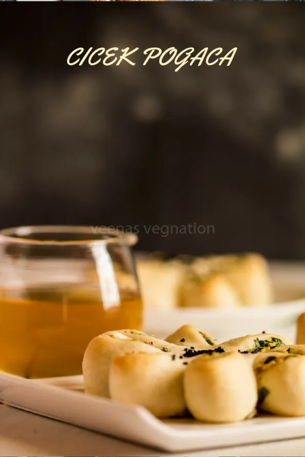 For the third day of alphabetical baking , is a savoury bake from turkey known as Cicek Pogaca which means flower shaped pogaca. According to Wikipedia, It is also called as pogacice eaten in Bosnia, Bulgaria, Slovenia, Serbia and Turkey. The outer layer can be done with filo pastry or the usual pizza bread dough and usually is served as an appetizer. These are usually filled with potato filling with loads of feta cheese stuffed in it.