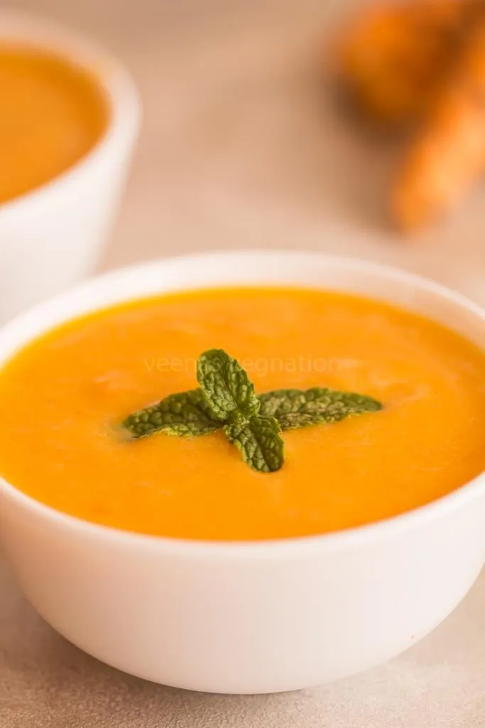 When you child is not a soup lover, try giving him this healthy colourful fresh turmeric carrot soup. He will love it and will ask for more.
