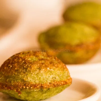 This is an instant version of appe and the time taken to prepare instant appe is very less. You need to have only the soaked green gram ready before you are ready to make this. The green colour is sure to entice the little guests. One bite into this appe will make them reach out for more.