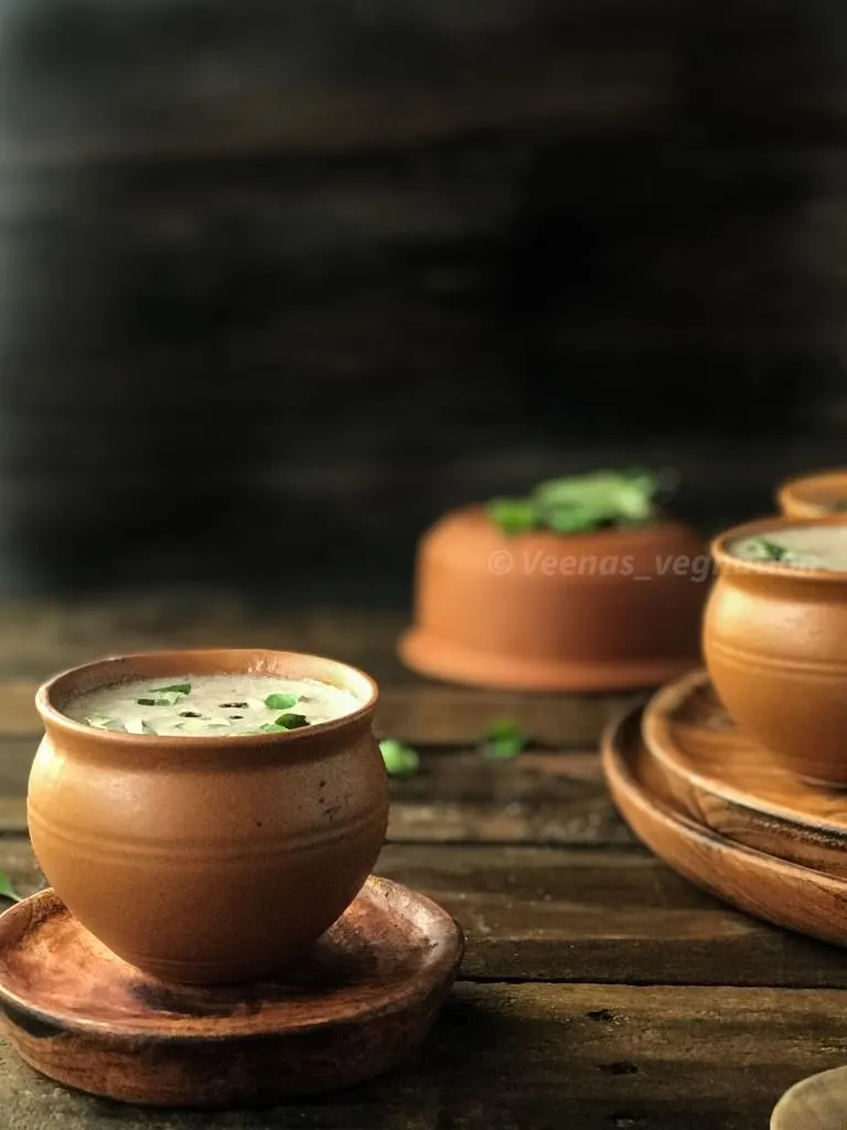 A very healthy summer savoury drink with combines the goodness of finger millet or ragi and buttermilk