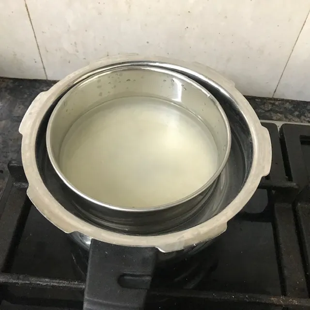 Now, I quickly arrange two cookers on the gas stove. Here I am having two cookers/ or pressure pan and a four-burner gas stove. Two burner gas stove is more than sufficient.