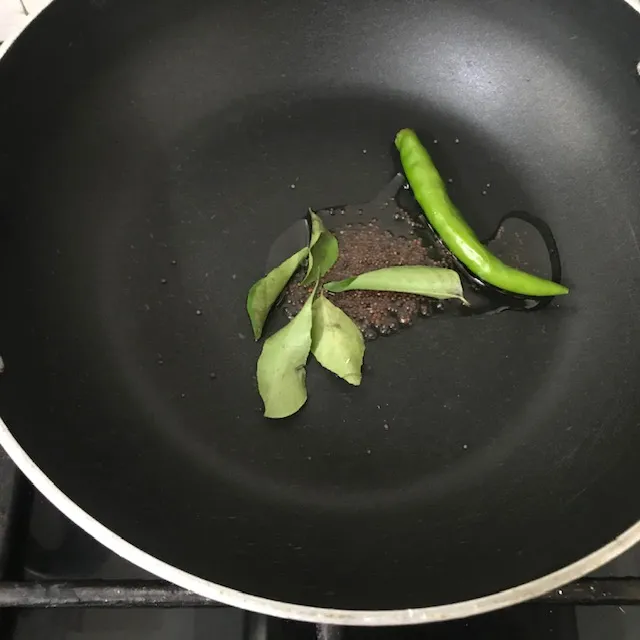 Now the cooker with the rice after 3 whistles is also done, so I put a bigger kadai on the big burner to cook the sambar which is our final dish.
