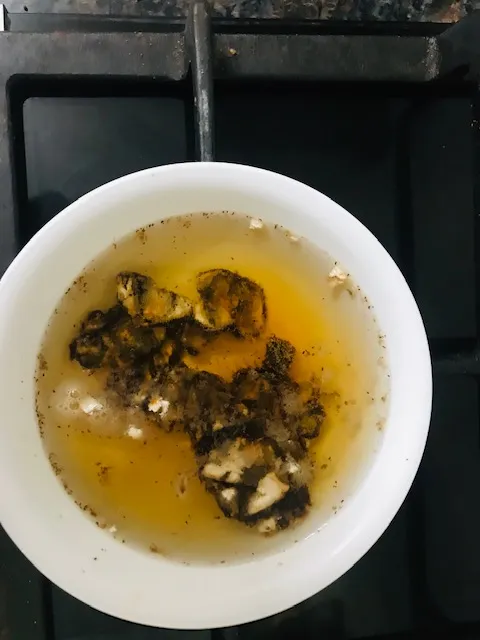 I have heated the water for the tamarind for 1 minute. Soaked the tamarind in it and left it aside. You can choose to heat the tamarind in water in a microwave too. The other option would be to use the readily available tamarind paste which is either homemade or store-bought. Here the soaked tamarind is for both the sambar and rasam. So do take the necessary quantity.