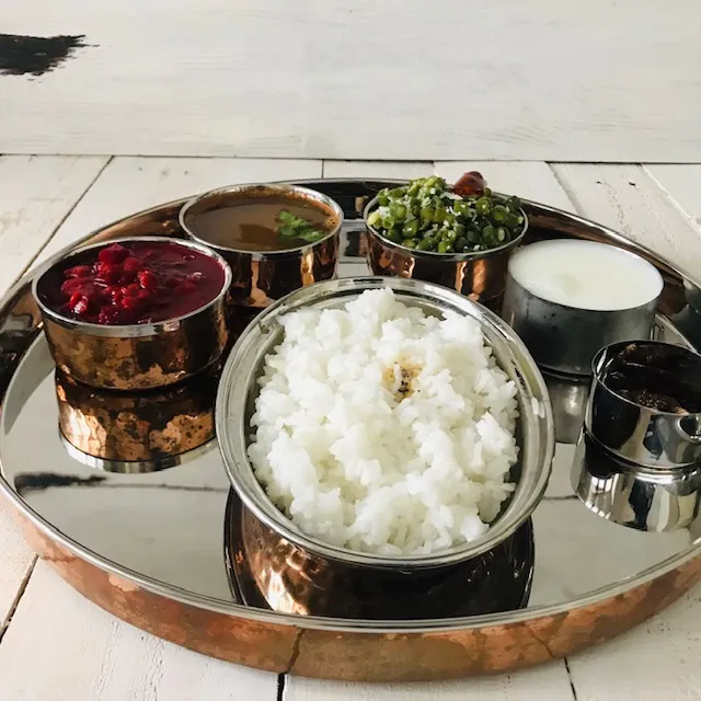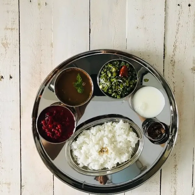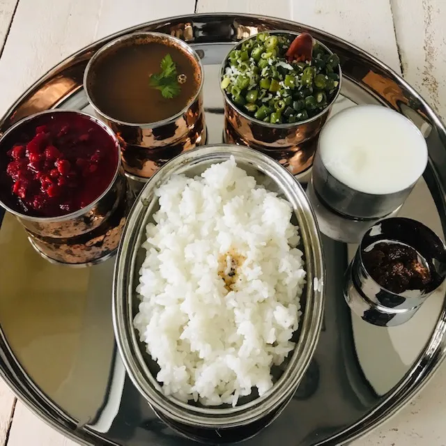 South Indian tambrahm meal will mostly have a sambar, which is rich in proteins. It will have the necessary carbs in the form of rice. Rasam, which is seen more as a soup as the appetizer and helps in the digestion. Then we will have the necessary vegetables to give us the micronutrients. Fat is from homemade ghee or unadulterated ghee. Probiotics are supplied with the curd that is used. So if I prepare a meal with these things taken into account, then I will have a balanced meal ready to be served.