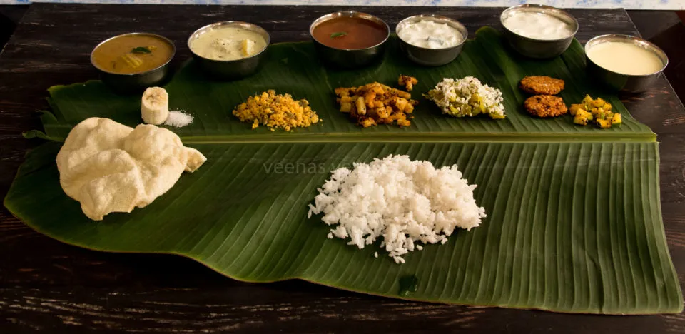 The picture of plantain leaf with all items neatly arranged makes the mouth water!