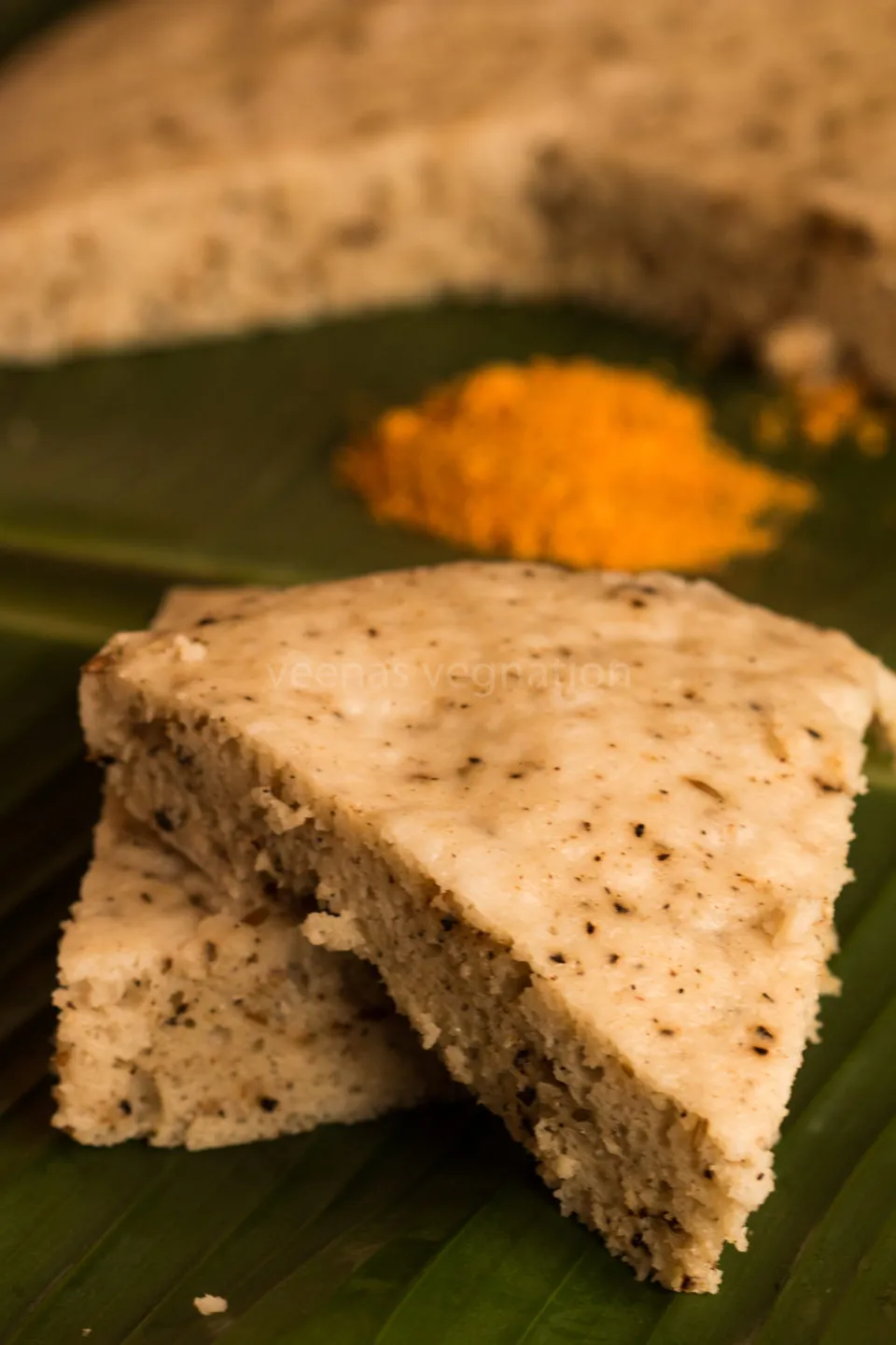 My aunt Lakshmi, hails from Kanjeevaram and prepares this idli so well. She readily agreed to tell me the way she prepares it at home and I prepared it just like she does. It is absolutely delicious. These Kanjeevaram idlis are traditionally prepared in long cylindrical mouls, or cups made of Mandara leaves or in plates as I have prepared. Easy has it own advantage. The idlis prepared in the mandara cups have a unique flavor. Ofcourse you can prepare them using regular idli moulds too