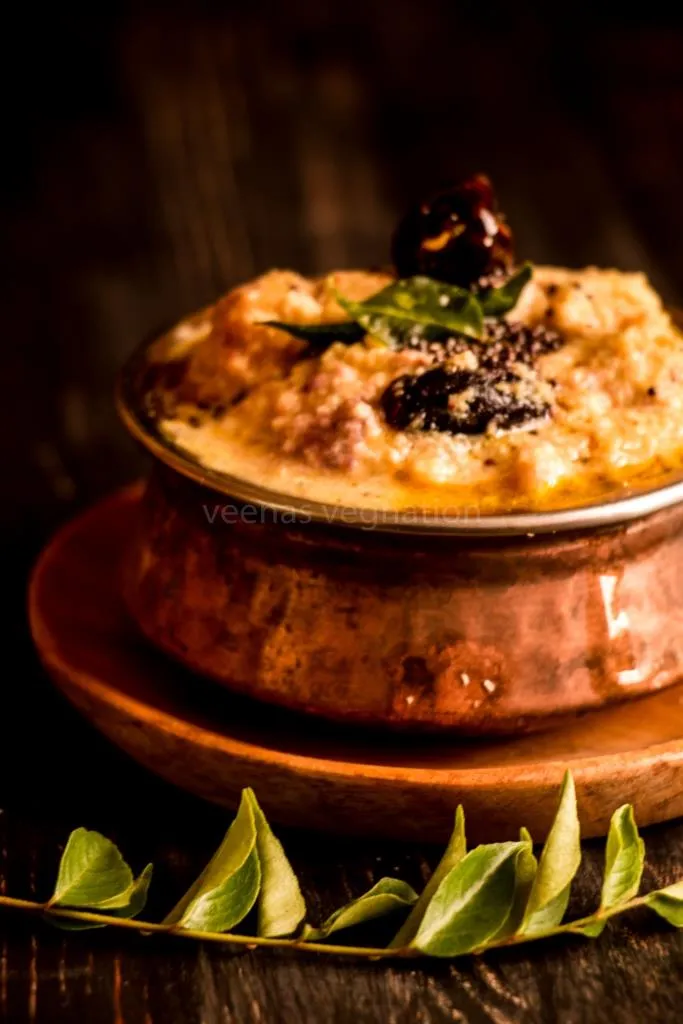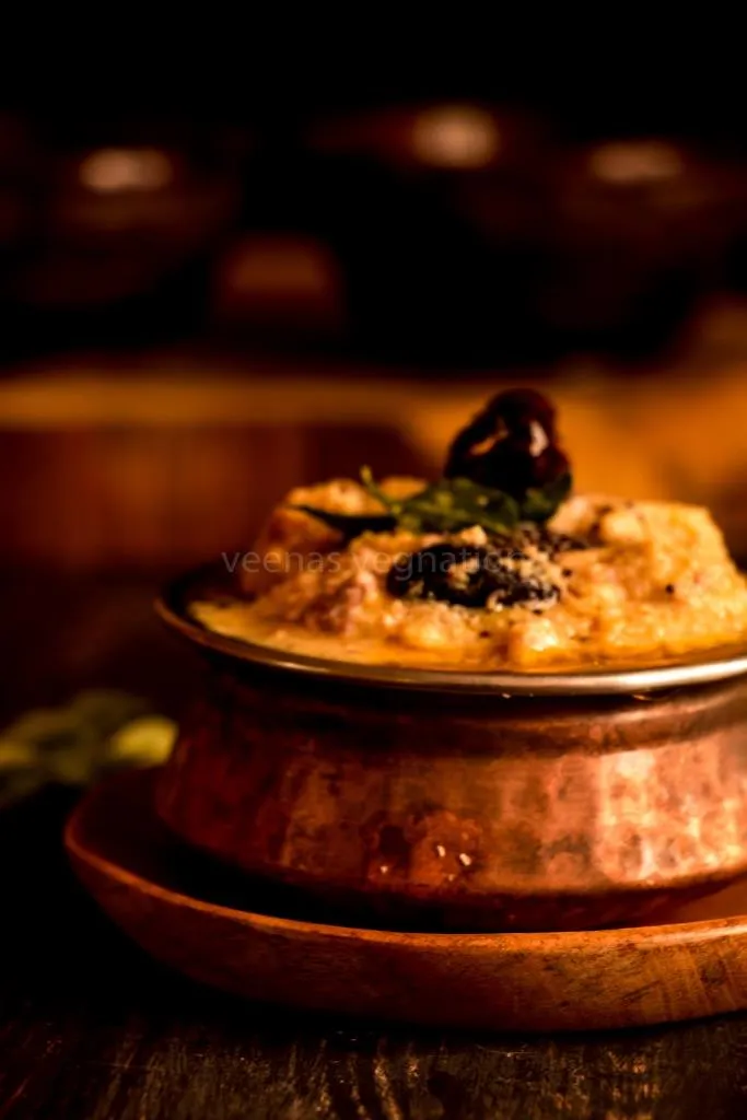 After cooking elaborate thali recipes of tamilnadu-Iyengar elai saapaadu and Madwa Brahmin oota from Karnataka, our neighbouring state Kerala couldn’t be left behind. So decided to cook some of their delicacies. We can see the similarities to our own cuisine, like molagootal is more like our kootu, Mor kootan is again similar to our Mor kuzhambu, Thoran is like our Karimadhu. One recipe which I had never eaten is this fruit pachadi Madhura curry. I just loved the name when I was searching for kerala recipes, I came upon this blog Kothiyavunu and then one look at the ingredients and I knew I would love this.In the Kerala thali shown below, I have served in the following order. In the cups it is, Madhura cury, Vellari pachadi, Molagootal, Mor kootan, Rasam