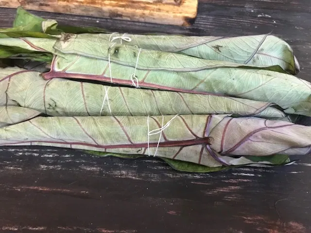 Veena stack the leaves opp each other as in the first leaf tip is facing away from you then the second one’s tip faces you and alternate accdgly , also in our family we smear the paste all over the leaf and even once it is folded inwards