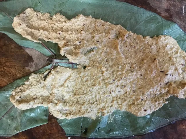 The cooled sliced disks can be eaten as is Orr coated with rice flour and tawa fried in coconut oil or eaten warm with coconut oil on top