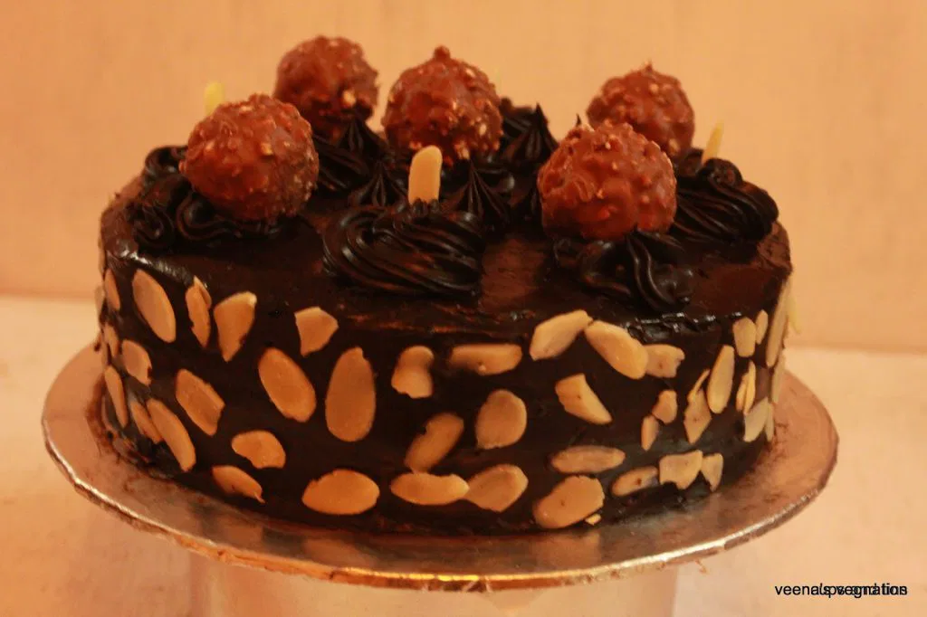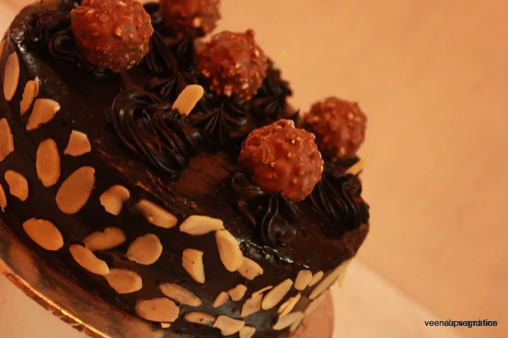 topped it with ferroro rocher. A perfect chocolate loaded cake
