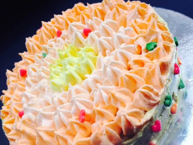Next pipe the cake with the buttercream with a nozzle that you have